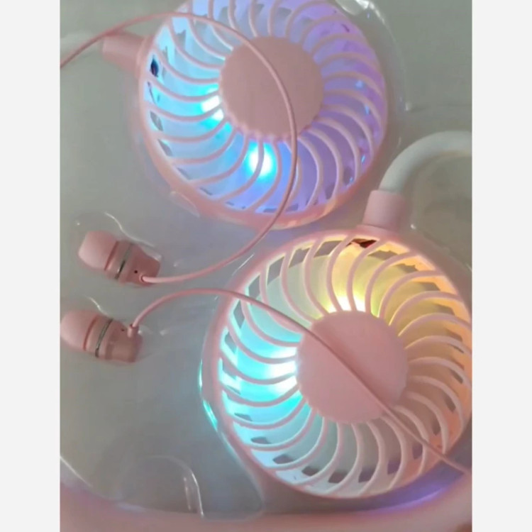 فن و هندزفری 3سرعته باتری باکیفیت 1200 میلی امپر رنگ: صورتی RGB دار